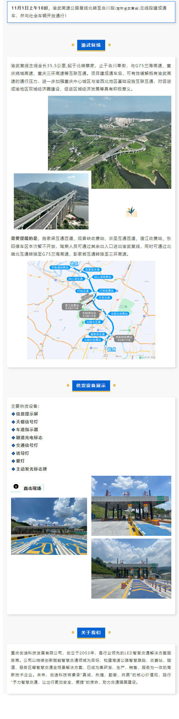 重慶創(chuàng)迪助力丨渝武高速公路復(fù)線北碚至合川段建成通車!